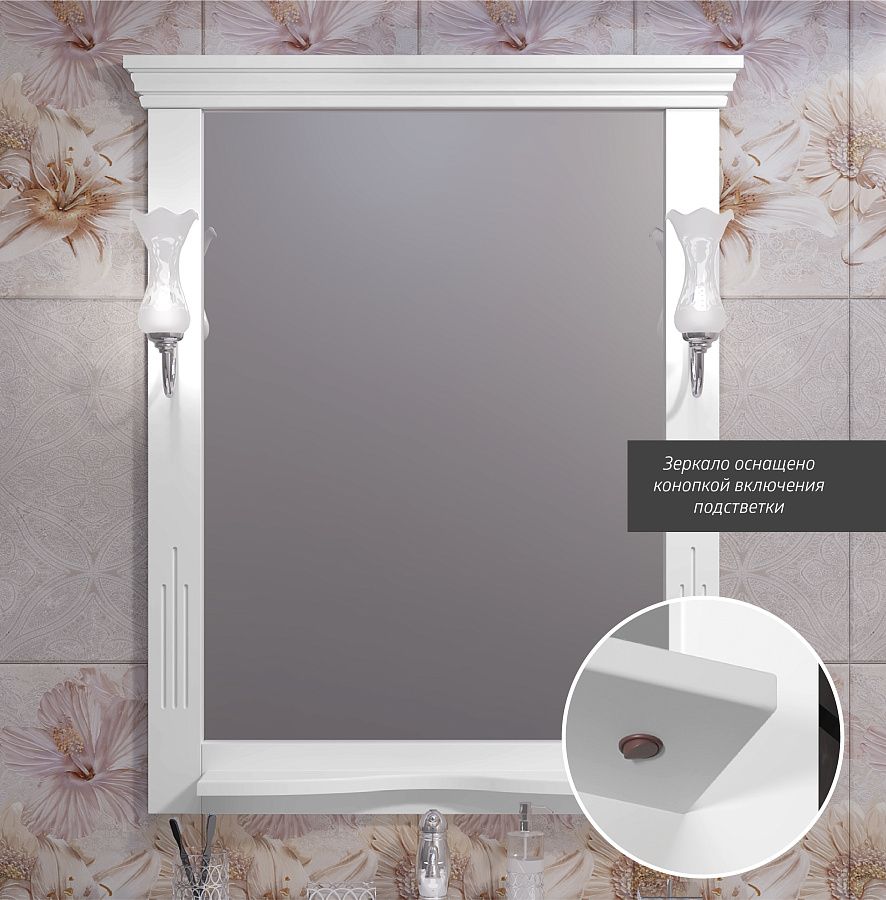 Светильники приобретаюся отдельно.Зеркала по умолчанию идут с отверстиями под светильники. В случае отсутствия необходимости заказа светильников, возможна комплектация зеркала декоративными накладками серебро или бронза.Коллекция Риспекто символизирует лучшие традиции неоклассики в сочетании с необыкновенной функциональностью и простотой дизайна.Строгий контроль при изготовлении изделий исключает наличие малейших дефектов. Зеркальное полотно дает четкое отражение без каких-либо искажений. Слоновая кость цвет прекрасно дополнит интерьер ванной комнаты.