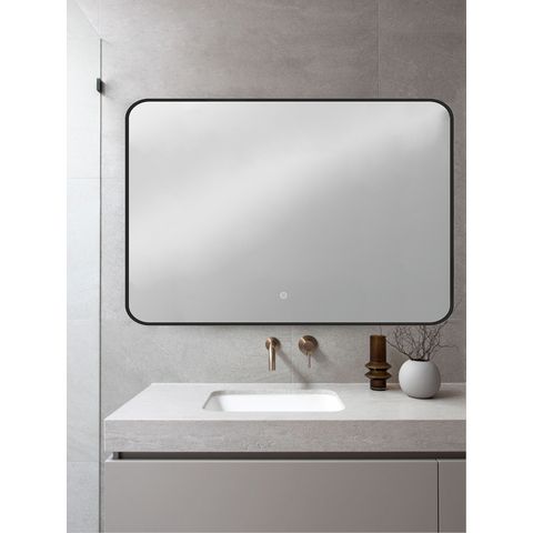 Зеркало Orange Black BL-100ZE 100 см с LED подсветкойЗеркало с LED подсветкой с чёрной окантовкой и сенсорной кнопкой бренда Orange прекрасно дополнит интерьер вашей ванной комнаты. Зеркальное полотно премиального качества производства AGC. Усиленная LED-подсветка (36W) по периметру обеспечивает отличное рассеянное освещение и отсутствие теней. Включение происходит за счет касания пальцем светящейся области сенсорного выключателя. Зеркало имеет пластиковый короб, что позволит надежно защитить электронику от попадания влаги.