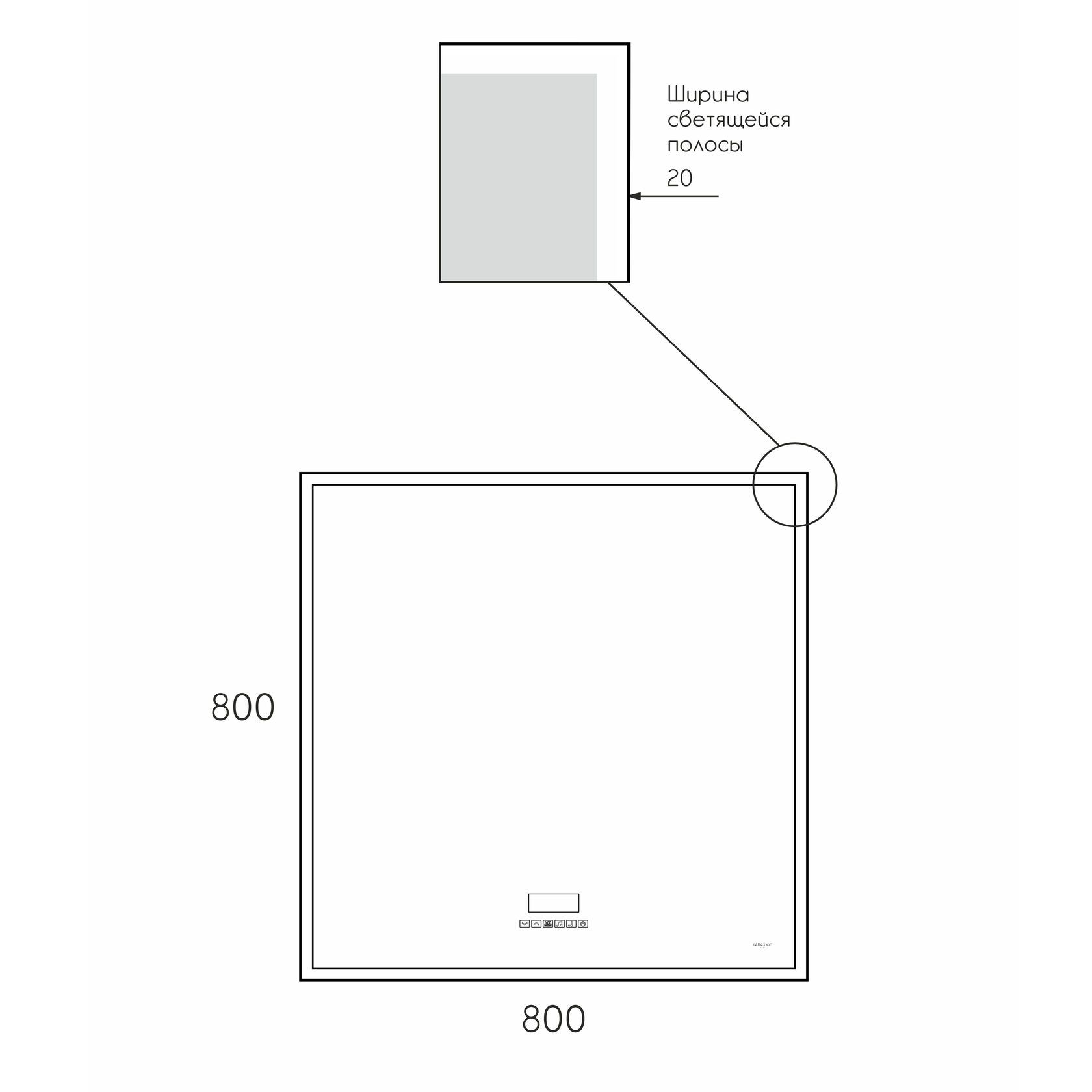 Зеркало Reflexion Ghost с LED подсветкой, сенсором, музыкальным блоком (BT, FM), подогревом 800х800