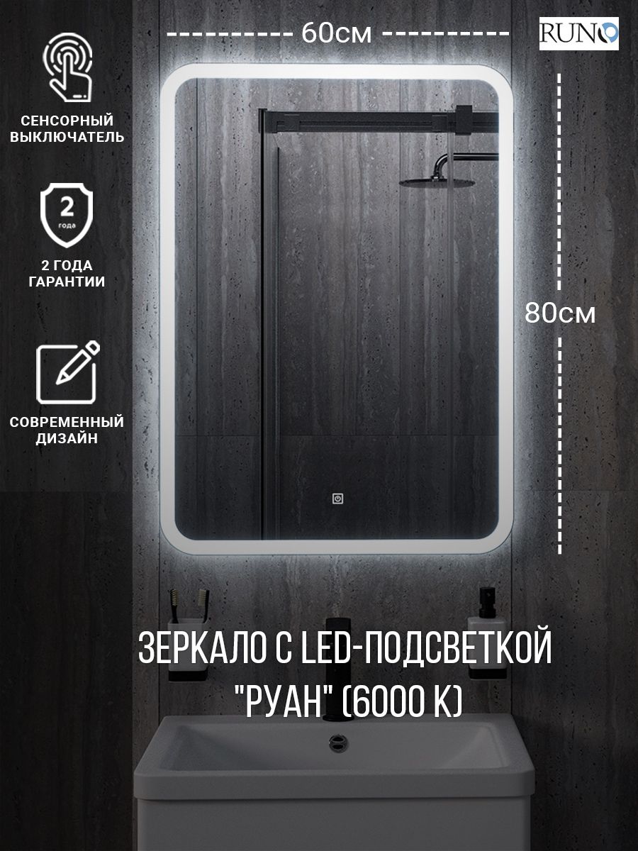 Зеркало RUNO с подсветкой 600х800 Руан Led (00-00001288) купить