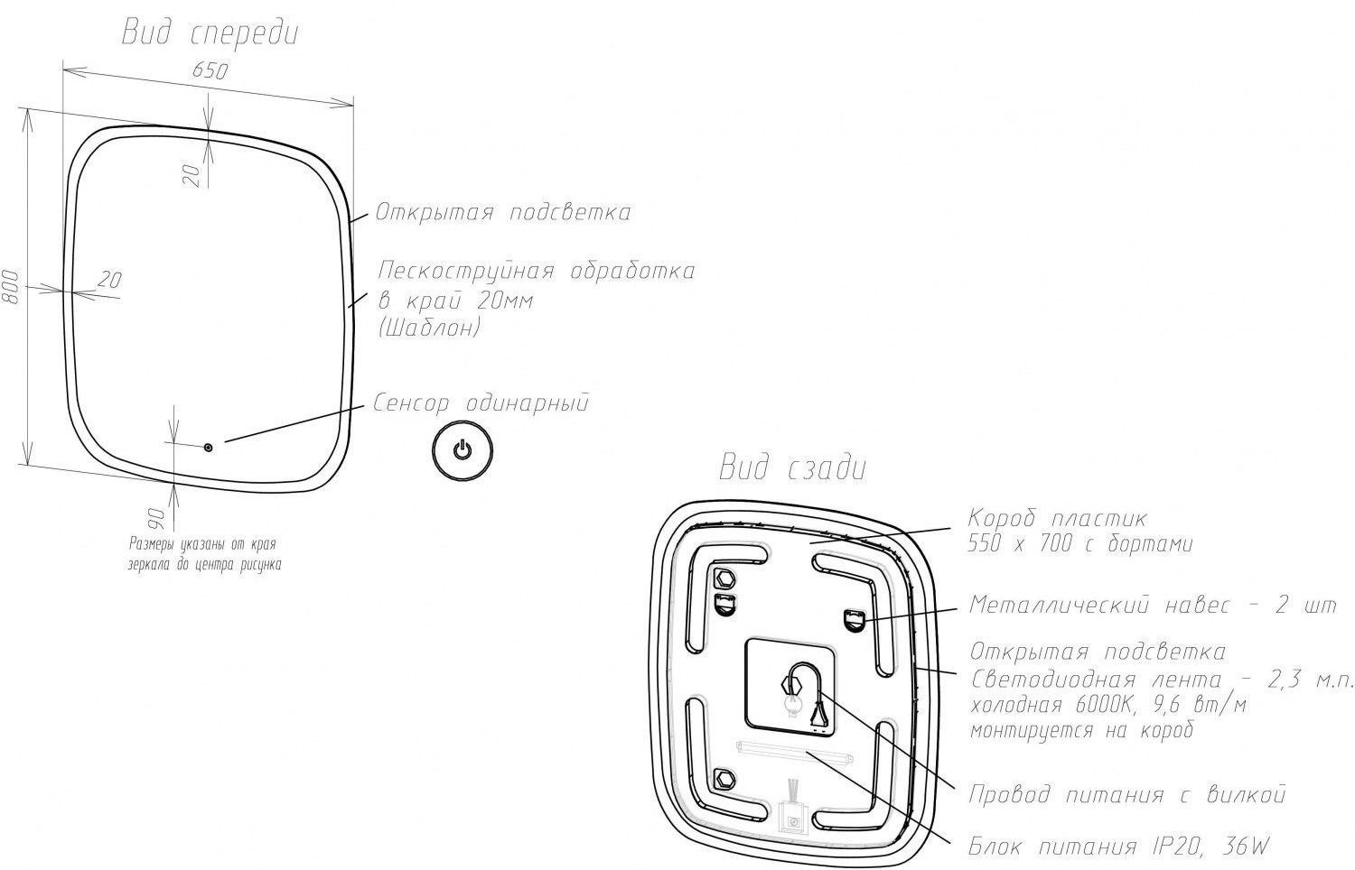 Тип:зеркало с подсветкой