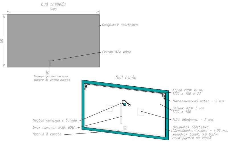 Оснащение: зеркало, крепеж, коробка, инструкция.