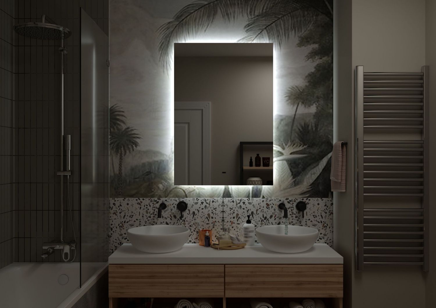 Зеркало, оснащенное светодиодной LED подсветкой с диммером .
