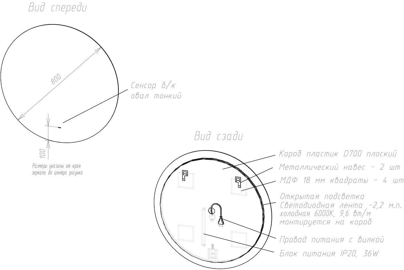 Зеркало с холодной подсветкой Art&Max Sanremo 80см AM-San-800-DS-F купить