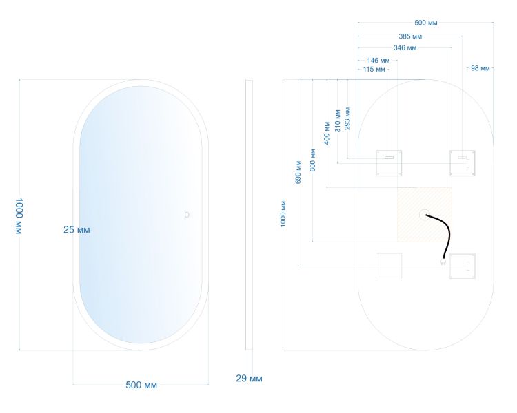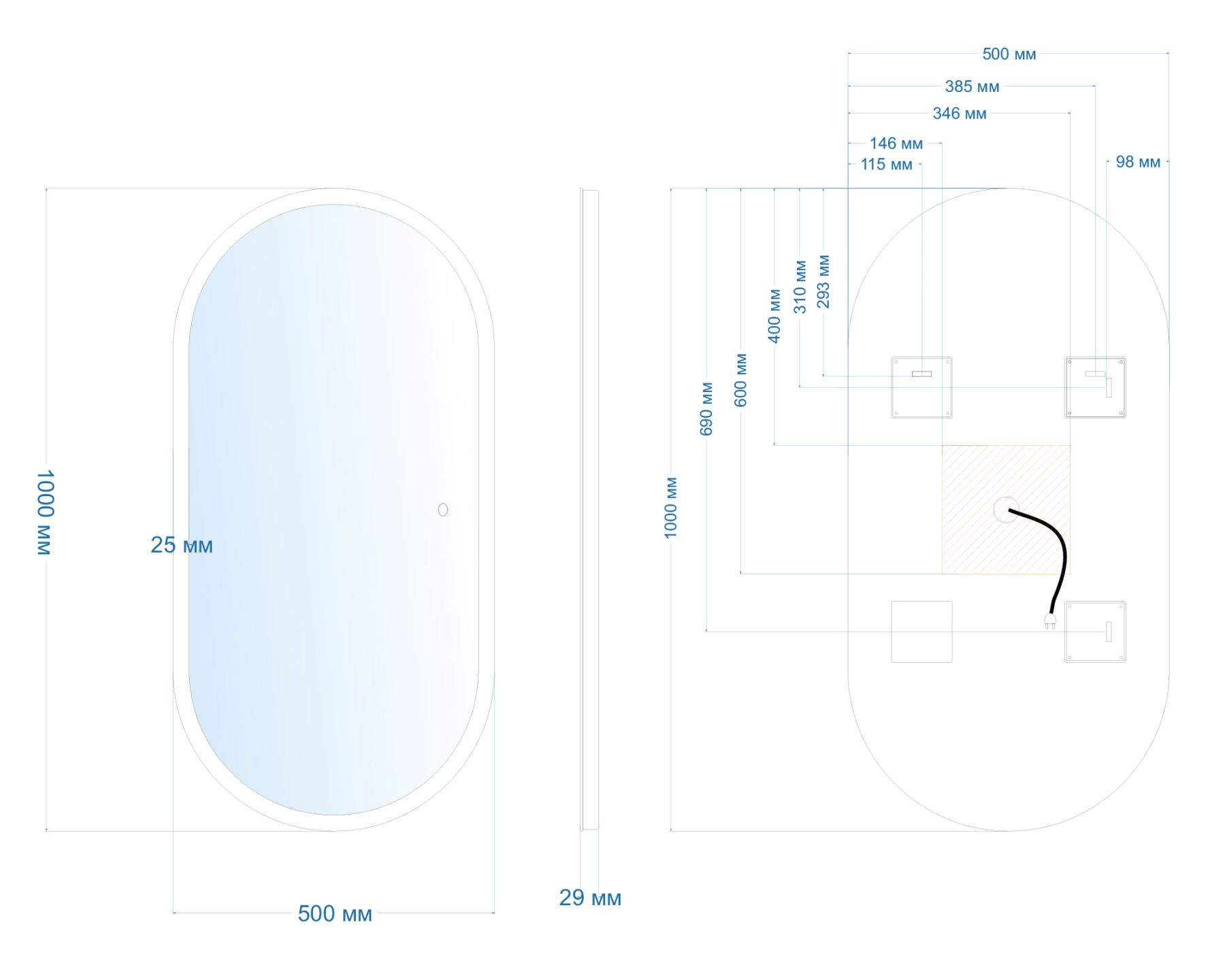Зеркало ABBER Kontur AG6303S-1.0 с подсветкой, сенсорный выключатель, диммер
