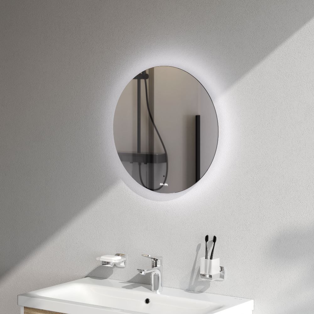 X-Joy Зеркало круг с интерьерной Led подсветкой, ИК-сенсором, 50 см M85MOX40501SРасширение размерной линейки зеркал AM.PM. Зеркало с LED-подсветкой и бесконтактным сенсором. Стильное решение для ванной комнаты. Визуальный эффект "парящего" зеркала добавляет интерьеру легкости и изящества. Размер изделия (Ш/Г/В): 500x30x500Преимущества и функции:Подсветка естественного дневного цвета не искажает отражение.