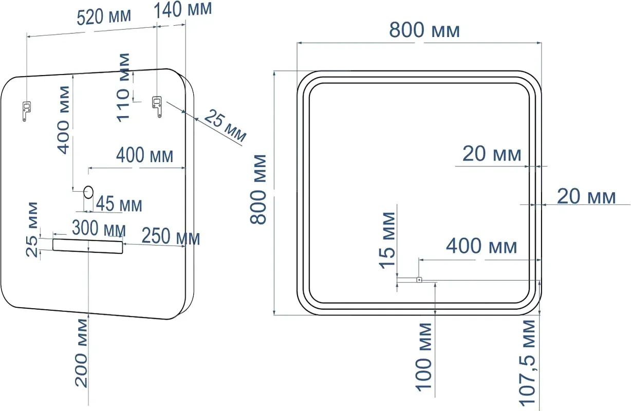Оснащение: зеркало, крепеж, коробка, инструкция