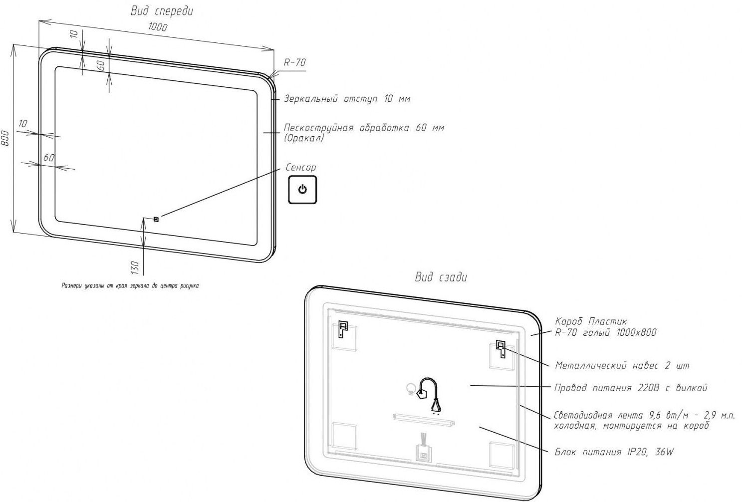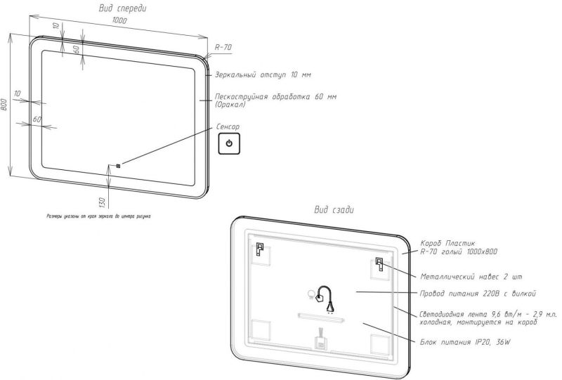 - Толщина светодиодной рамки: 60 мм