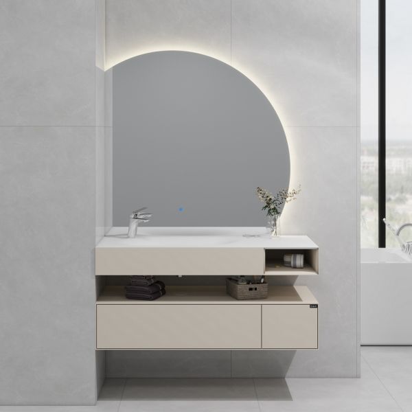 Угловое зеркало из коллекции U 955 в габаритных размерах 100 x 3,5 см. Зеркальное полотно закреплено на основании из МДФ, а диодная лента изолирована от влаги в силиконовой трубке, что позволяет увеличить ресурс всего изделия. Кнопка включения сенсорная, также при использовании автоматически срабатывает функция антизапотевания.