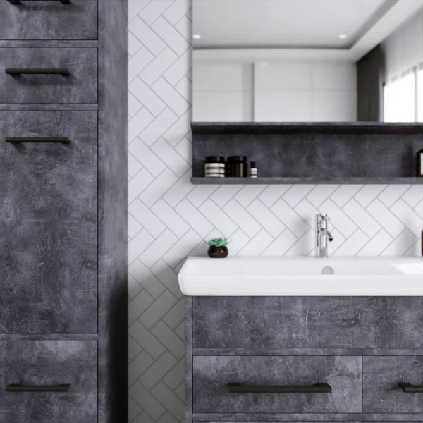 Его чистые линии и сдержанная форма создают гармоничный контраст с отделкой стен и сантехникой, добавляя комнате ощущение простоты и элегантности.
