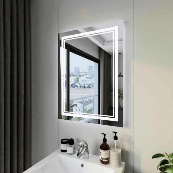 Зеркало с подсветкой Бриклаер Эстель-2 4627125414282 с часами 60 см на взмах руки купить