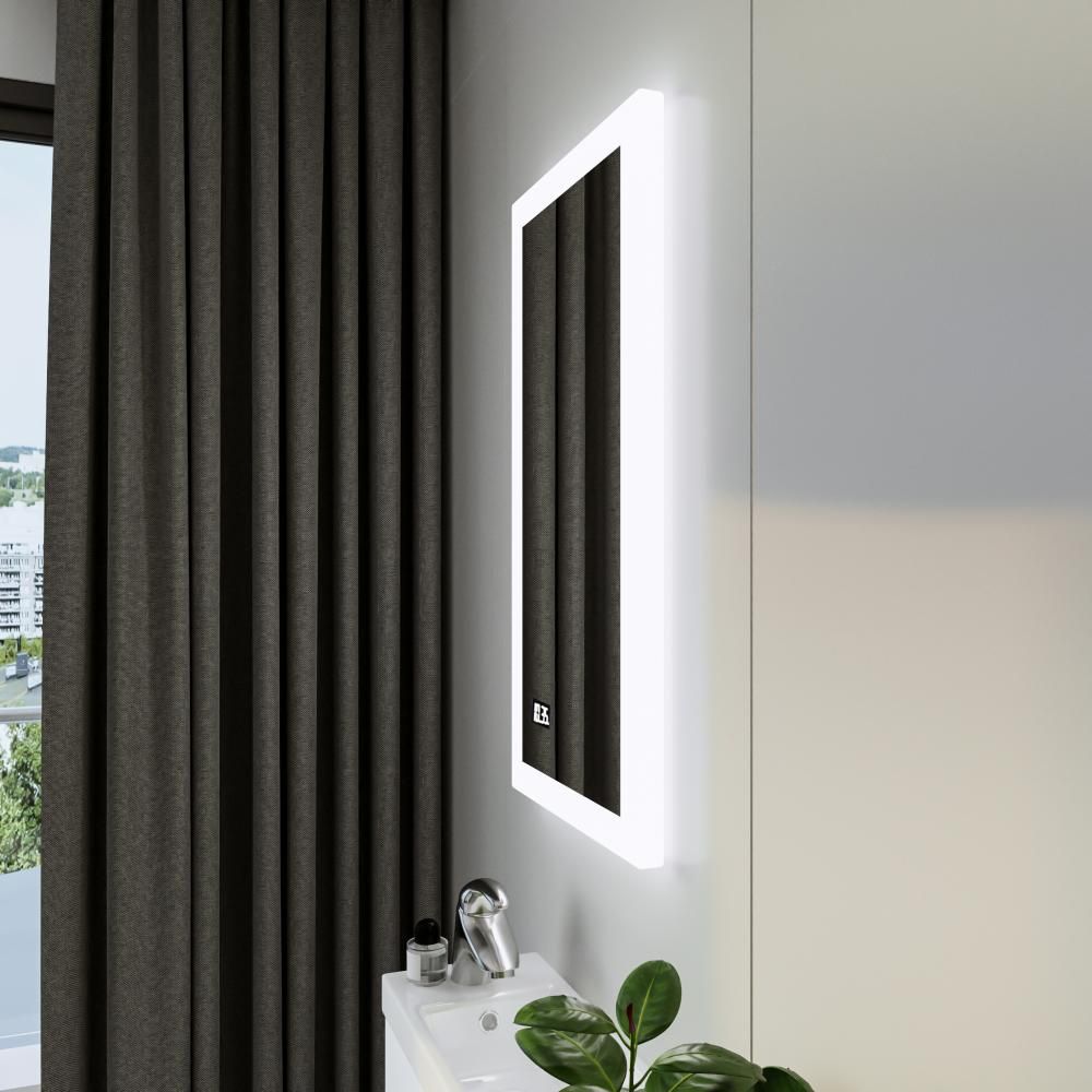 Зеркало с подсветкой Бриклаер Вега 4627125414190 с часами 40 см на взмах руки купить