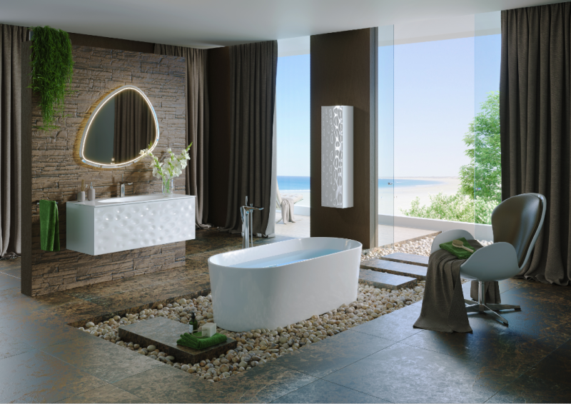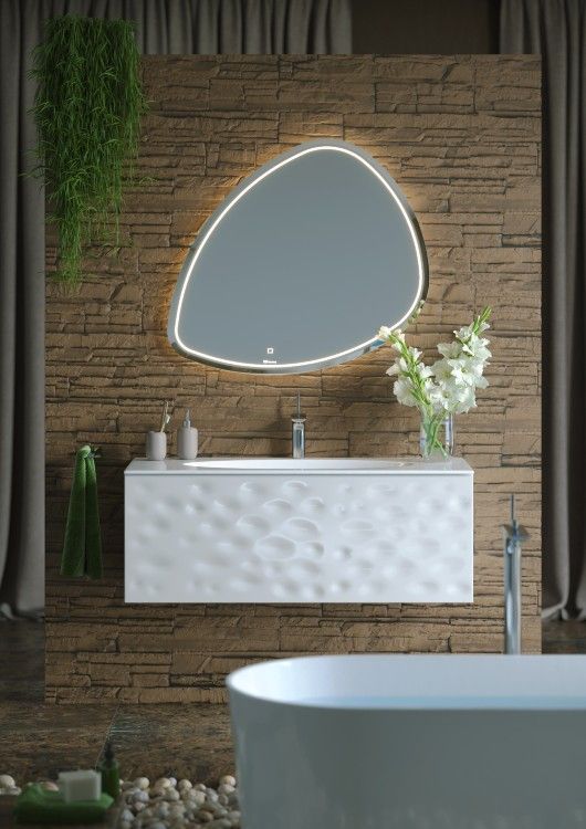 Подвесное зеркало Clarberg Stone 95 Stn.02.10 в форме камня, c энергосберегающей светодиодной подсветкой по периметру. Природные мотивы дизайна.С подсветкой