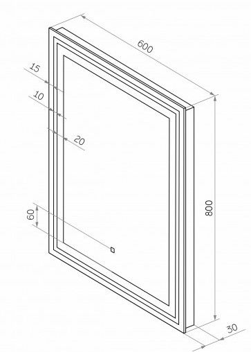 Зеркало "Fancy Led" 600x800LED подсветка 6000Ксенсорный выключатель с функцией димированияпрозрачный фацет по периметруакриловый короб