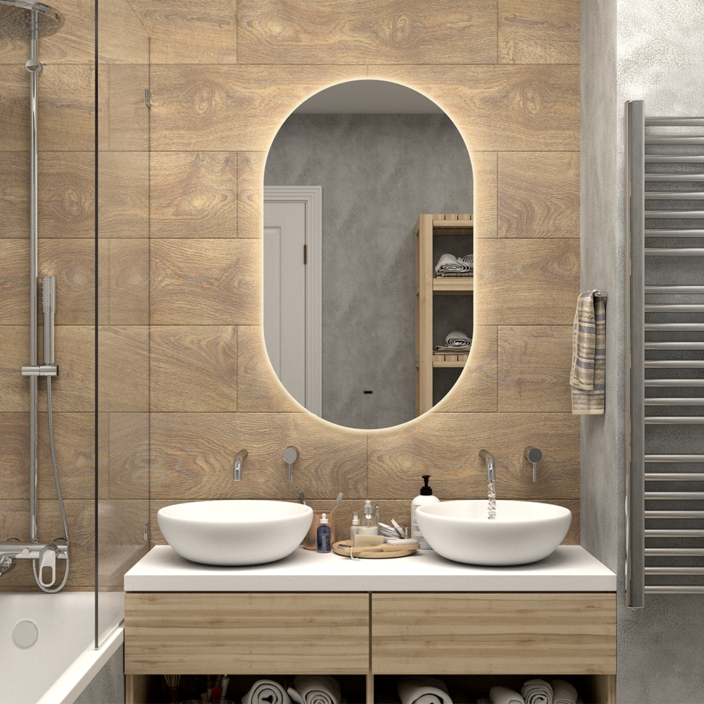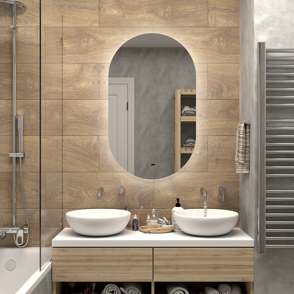 Зеркало "Fleur Led" 650х1000 с бесконтактным сенсором, холодная подсветкаLED подсветка 6000Кбесконтактный сенсор с функцией димированияореольная подсветка