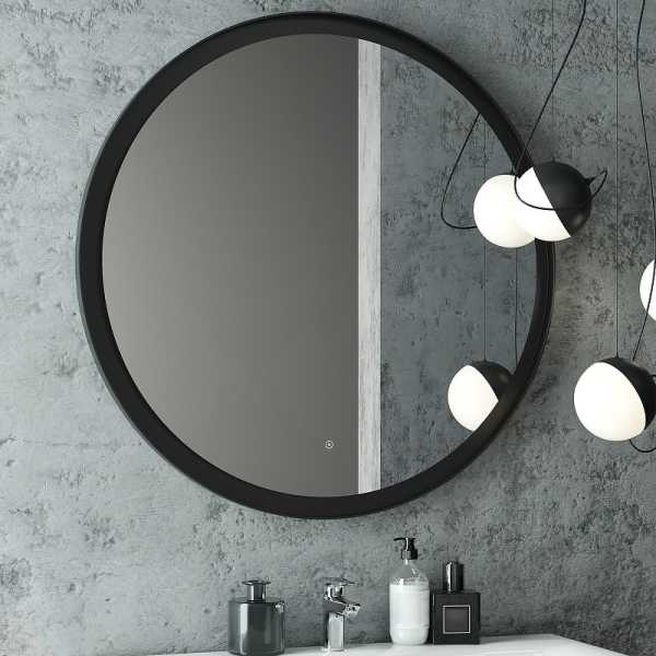 Зеркало "Planet Black Led" D 700 с бесконтактным сенсоромLED подсветка 6000Кбесконтактный сенсор с функцией димированиярама - МДФкороб в черной пленке Soft touch.