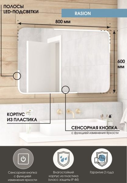 Зеркало "Raison Led" 800х600LED подсветка 6000Ксенсорный выключатель с функцией димирования