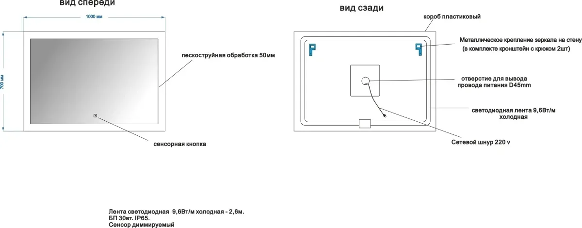Тип:зеркало с подсветкой