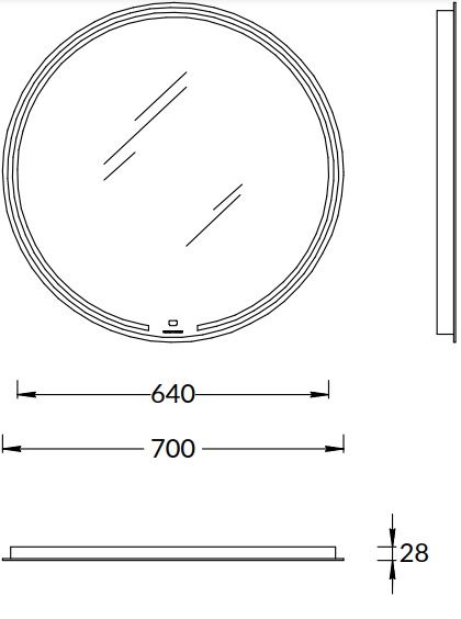 Зеркало MiO выполнено с деликатной подсветкой по периметру. Светодиодная подсветка включается одним прикосновением к сенсору в нижней части зеркального полотна, там же нанесён логотип KERAMA MARAZZI. Имеется встроенный диммер.