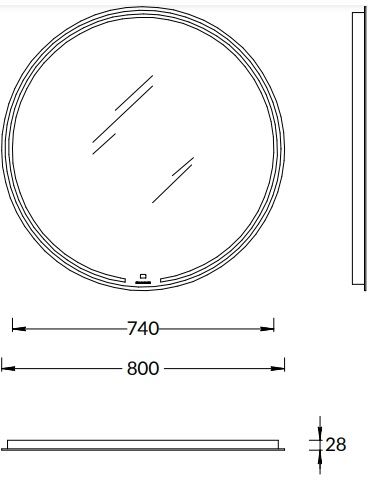 Зеркало MiO выполнено с деликатной подсветкой по периметру. Светодиодная подсветка включается одним прикосновением к сенсору в нижней части зеркального полотна, там же нанесён логотип KERAMA MARAZZI. Имеется встроенный диммер.