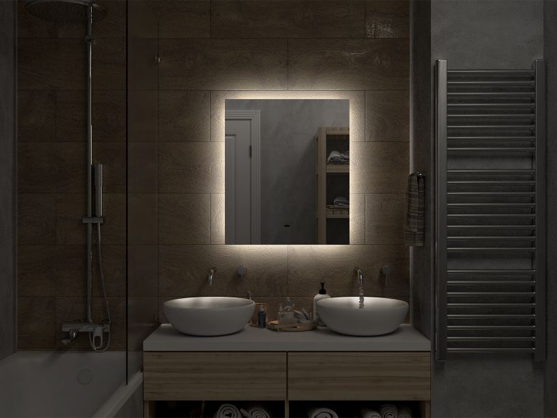 Зеркало с подсветкой для ванной комнаты — это элемент интерьера, который сочетает в себе функции, эстетику и современный дизайн. Его изящная форма и тонкие линии легко вливаются в любое пространство, создавая атмосферу утонченности и уюта.Интегрированная светодиодная подсветка обрамляет зеркало, даря мягкий, рассеянный свет, который не только позволяет удобно наносить макияж, но и наполняет ванную комнату теплом и позитивной энергией.Классический дизайн позволяет использовать его в различных стилях – от минимализма до современного эклектичного оформления. Оно прекрасно вписывается в любую цветовую гамму, будь то нейтральные тона или более яркие акценты.