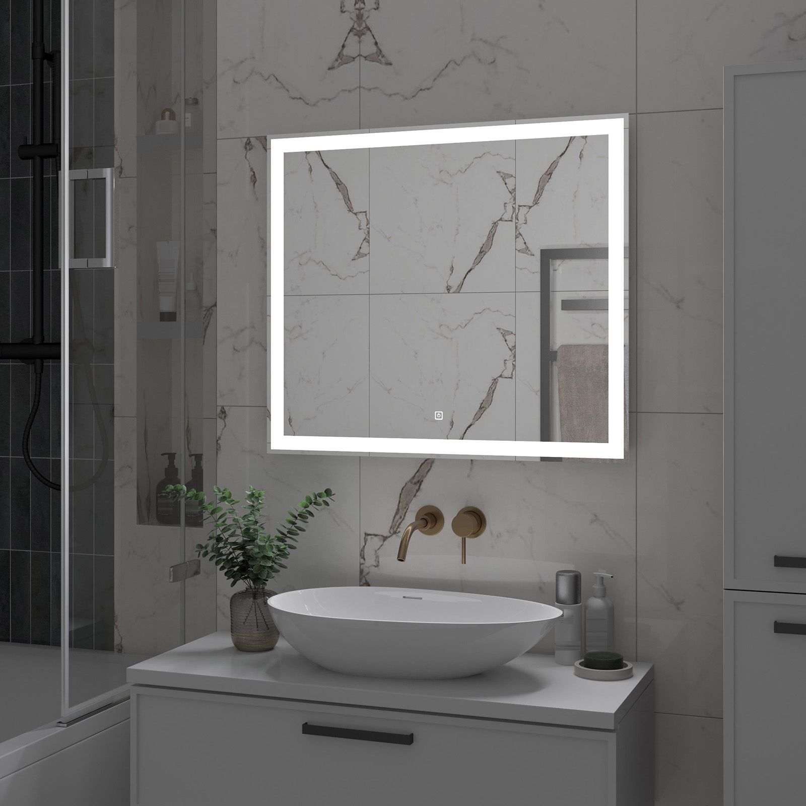 Зеркало с подсветкой для ванной комнаты — это элемент интерьера, который сочетает в себе функции, эстетику и современный дизайн. Его изящная форма и тонкие линии легко вливаются в любое пространство, создавая атмосферу утонченности и уюта.Интегрированная светодиодная подсветка обрамляет зеркало, даря мягкий, рассеянный свет, который не только позволяет удобно наносить макияж, но и наполняет ванную комнату теплом и позитивной энергией.Классический дизайн позволяет использовать его в различных стилях – от минимализма до современного эклектичного оформления. Оно прекрасно вписывается в любую цветовую гамму, будь то нейтральные тона или более яркие акценты.