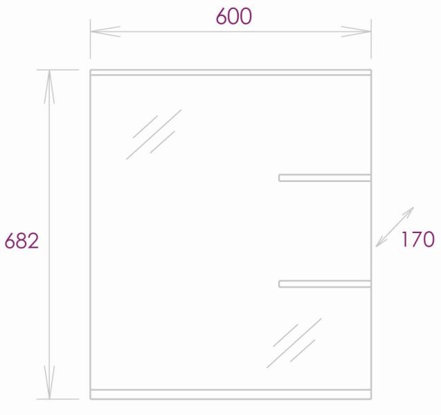Размер зеркала 60 х 17 х 68 см.