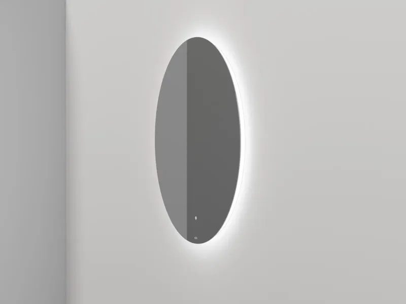 Идеальные линии, шлифовка «Еврокромка», фоновая LED-подсветка по всему периметру, управляемая одним касанием, эффект парящего зеркала благодаря тонкому корпусу в 20 мм, смещённому от края на 15 мм – коллекция OMBRA создана для тех, кто выбирает продуманный, стильный и комфортный интерьер ванной комнаты.