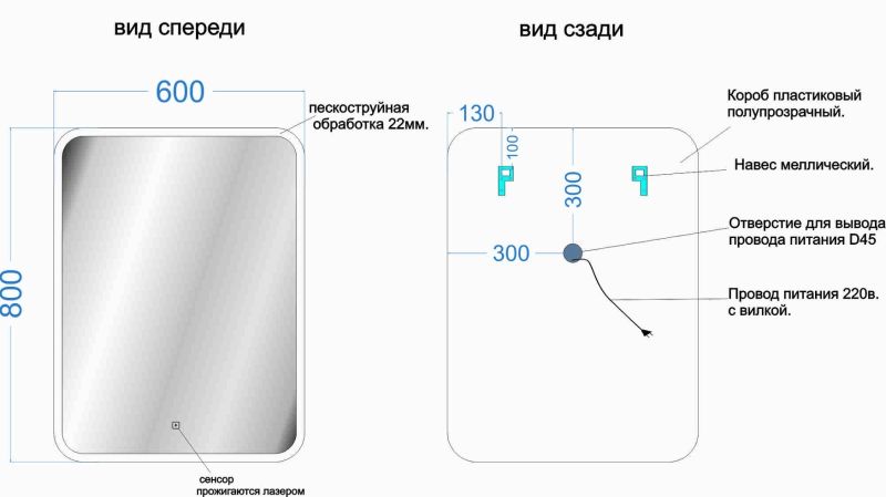 Тип:зеркало с подсветкой