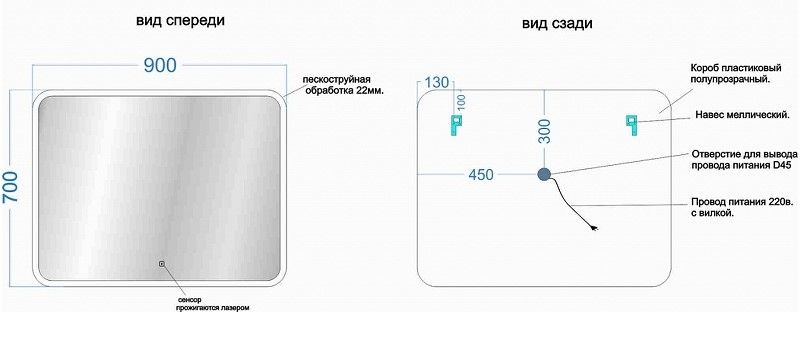 Тип:зеркало с подсветкой