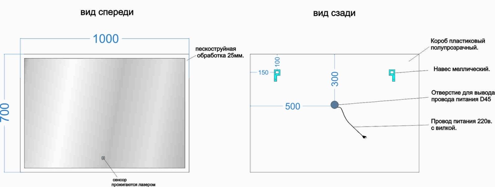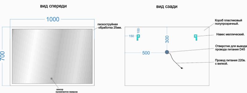 Тип:зеркало с подсветкой