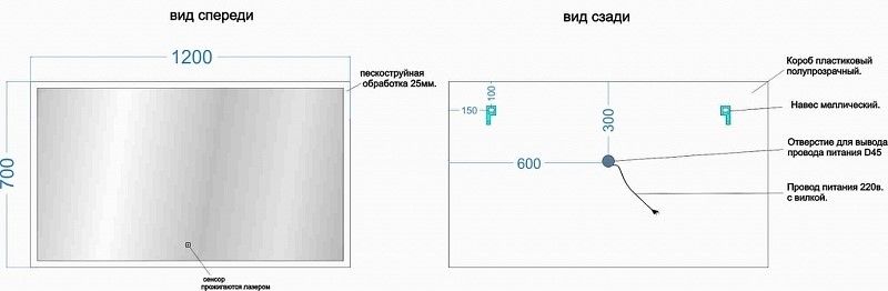 Размеры (ШхВхГ): 1200х700х25 мм.