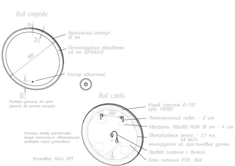 Тип:зеркало с подсветкой