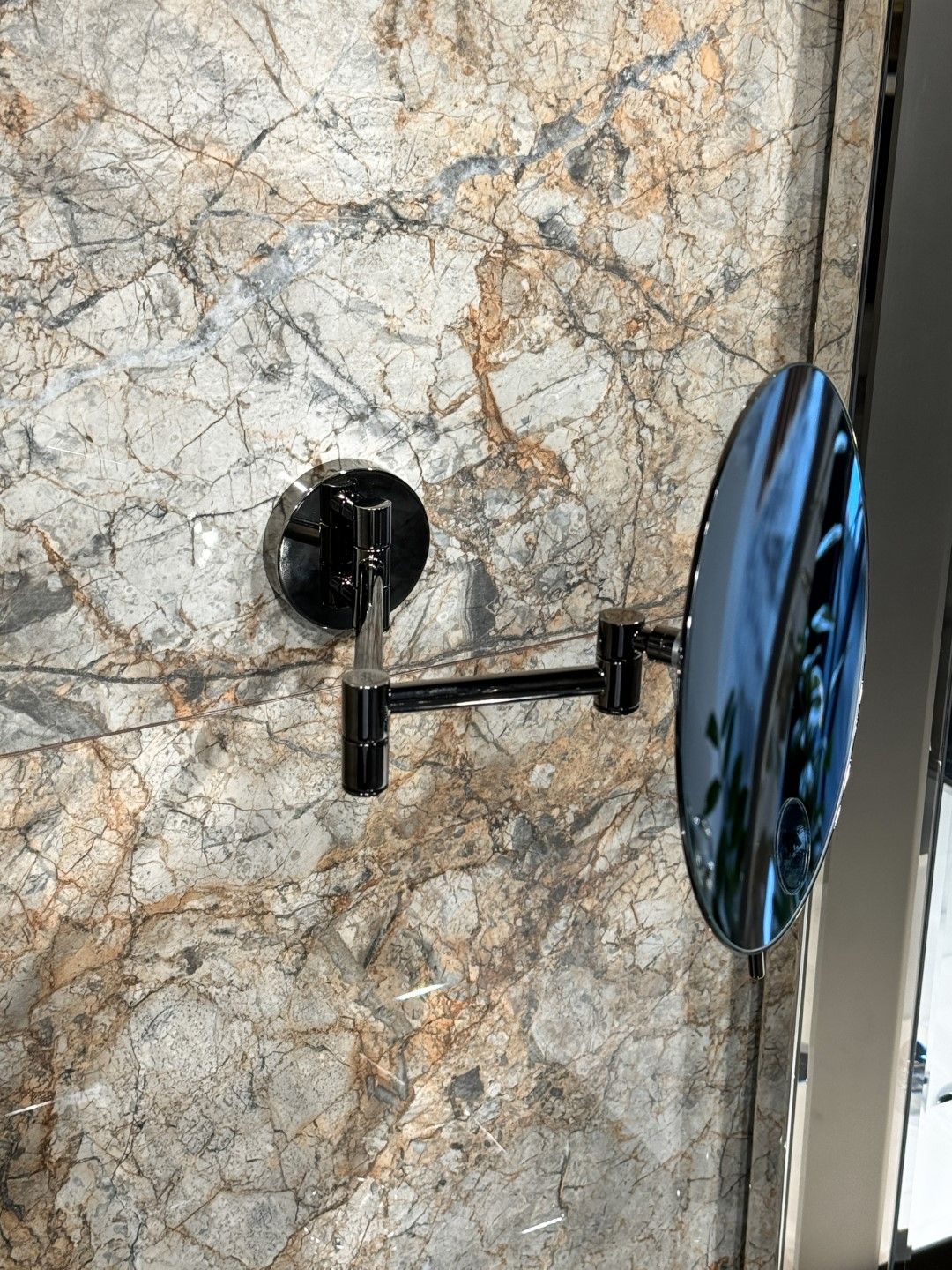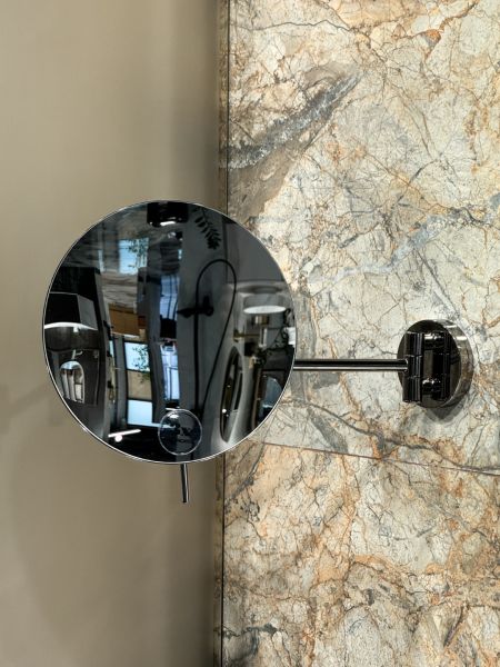 Настенные зеркала Boheme в круглом и прямоугольном исполнениях. С трехкратным увеличением. Минималистичный ультратонкий дизайн. Корпус выполнен из нержавеющей стали, угол поворота регулируется