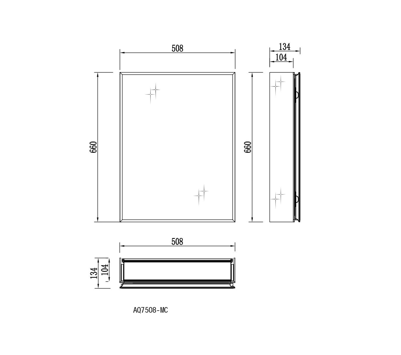 Габариты (Д В Ш), мм: 508х660х134Алюминиевый зеркальный шкаф без подсветкиФорма: прямоугольнаяМонтаж: подвесной, монтируется на поверхность или в нишуОдна цельнонакладная зеркальная дверца со скошенными краями. Ориентация универсальная.Зеркальный салонМатериал: алюминийЦвет: хромПетля DTC на 110 градусов, возможна установка с левым или правым поворотом. Конструкция дверцы позволяет устанавливать ее так, чтобы она открывалась в нужную вам сторонуС механизмом доводчика, обеспечивающим плавное закрываниеДве полочки из прочного стеклаМебель поставляется в собранном видеДополнительное оснащение зеркала: подвесыГарантия: 1 год