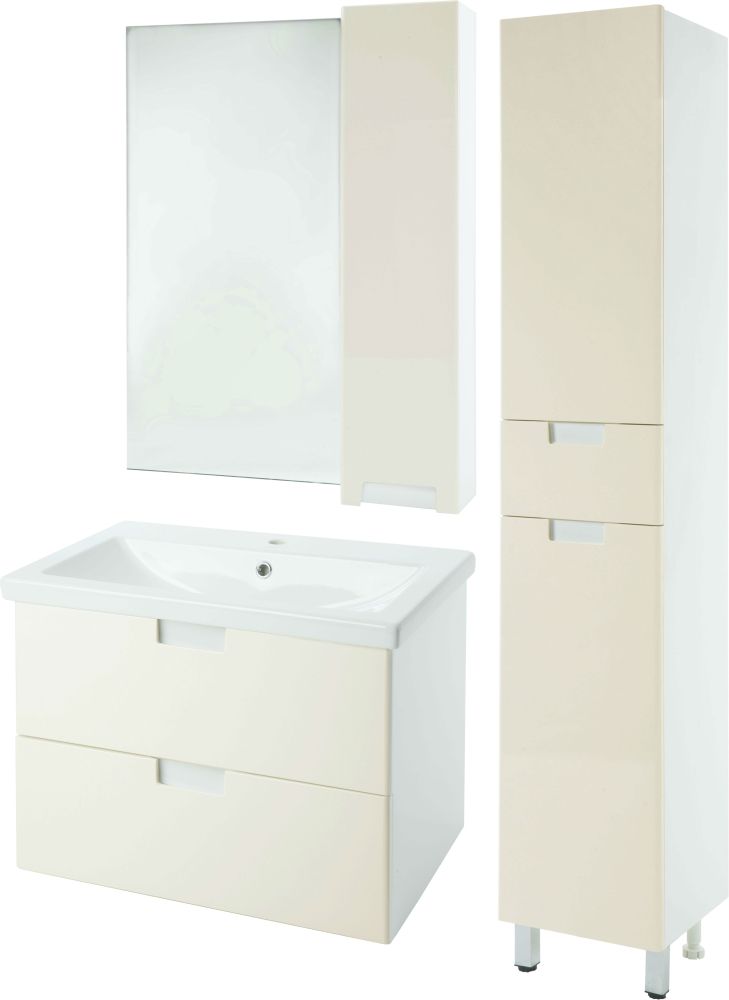В производстве используют только качественные влагостойкие материалы (ВЛДСП), в составе которых полностью отсутствуют опасные вещества. Данная серия выполнена в эксклюзивном дизайнерском решении в лучших традициях современного стиля. Бежевый, основной цвет исполнения Bellezza, гармонирующий с большинством интерьерных решений. Шкаф-зеркало предусматривает удобную и вместительную систему хранения. Зеркало Bellezza оснащено галогеновой подсветкой, позволяющей комфортно провести утренние процедуры.