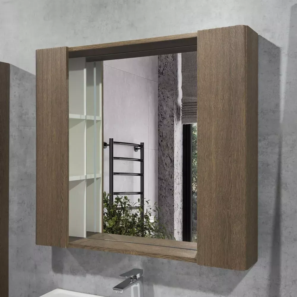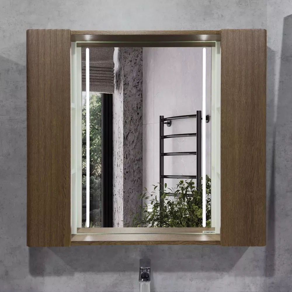 Зеркало-шкаф Comforty Ангара-90 дуб темно-коричневый с LED подсветкой и антизапотеванием купить