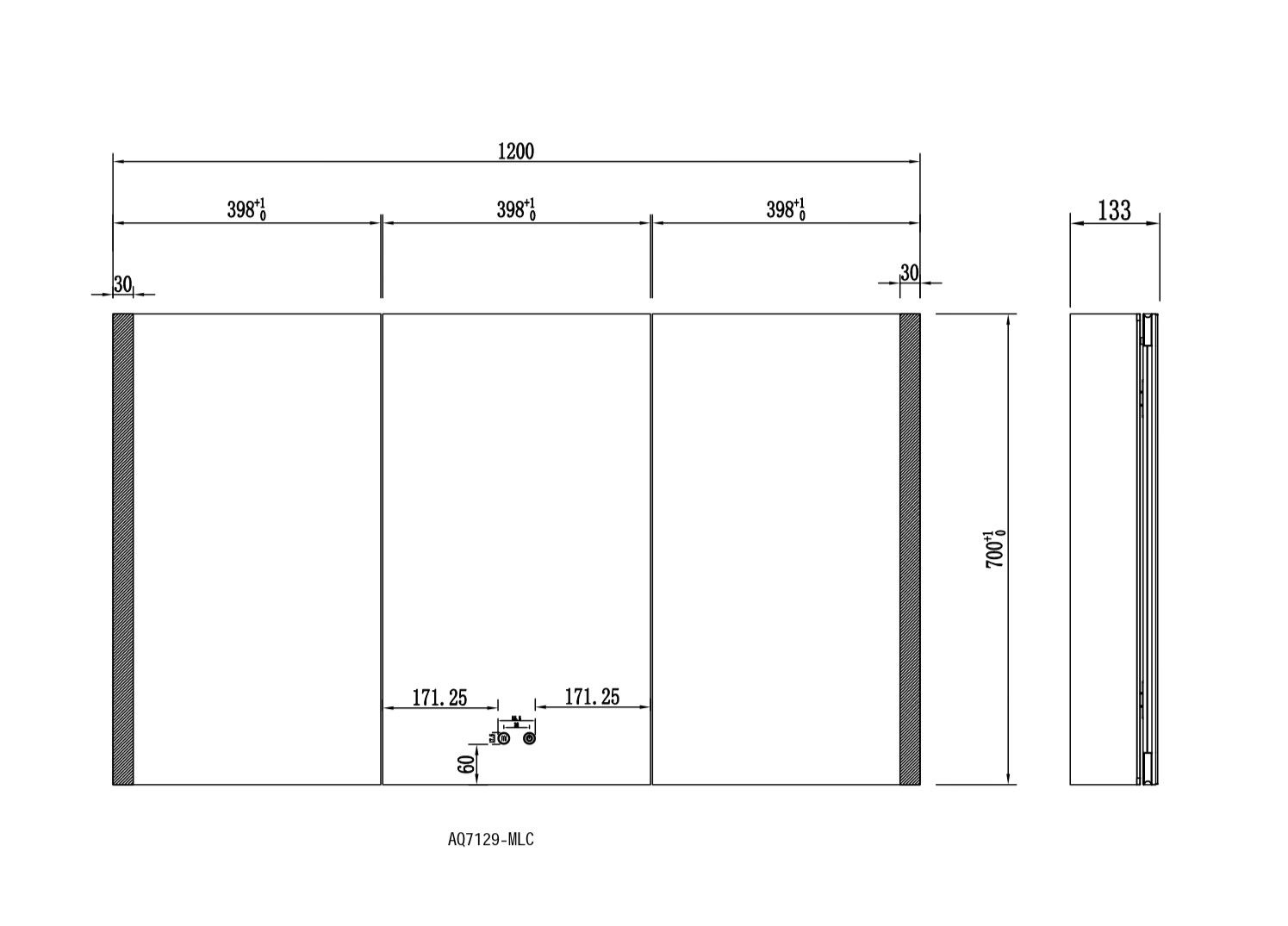 Габариты (Д В Ш), мм: 1200*700*133Алюминиевый зеркальный шкаф с подсветкойФорма: прямоугольнаяМонтаж: подвесной, монтируется на поверхность или в нишуТри зеркальные дверцы шириной 39,8 см.. Двусторонняя зеркальная дверь и зеркальные боковиныДве стеклянные полки 8 мм.Материал: алюминийЦвет: хромЗеркальный салонКруговая подсветка SMD 2835-120PЦветовая температура 2500K/6500KЛевая/правая боковая акриловая подсветкаФункция антизапотевания2 режима переключения света/ цветаСенсорное управлениеПетли DTC, открывание 95 градусовС механизмом доводчика, обеспечивающим плавное закрываниеМебель поставляется в собранном видеДополнительное оснащение зеркала: подвесыГарантия: 1 год