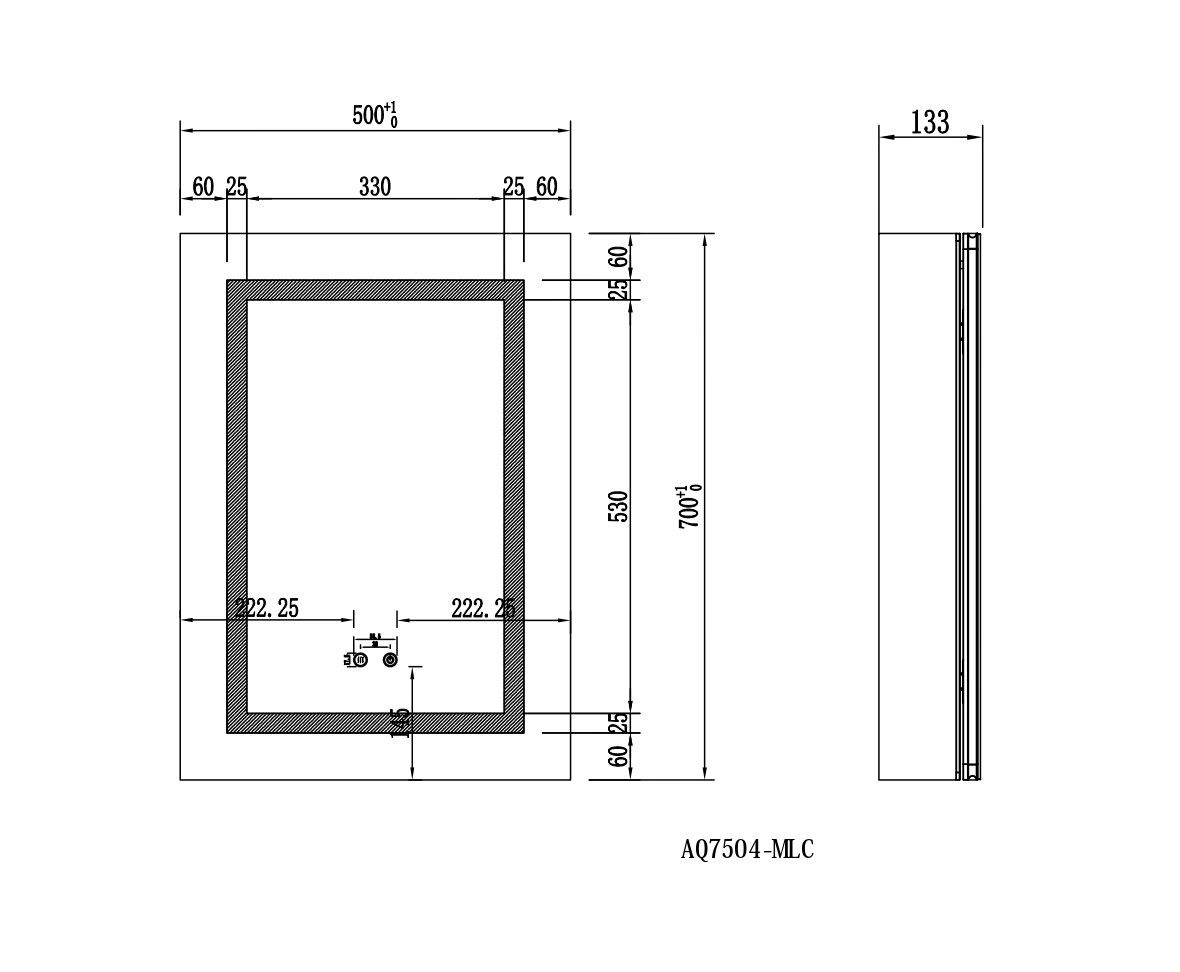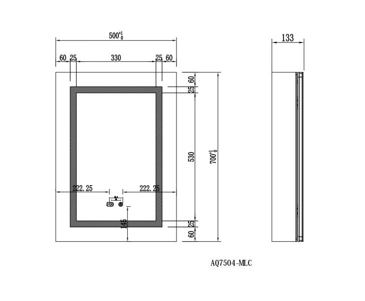 Габариты (Д В Ш), мм: 500*700*133Алюминиевый зеркальный шкаф с подсветкойФорма: прямоугольнаяМонтаж: подвесной, монтируется на поверхность или в нишуОдна зеркальная дверца. Двусторонняя зеркальная дверь и зеркальные боковиныДве стеклянные полки 8 мм.Материал: алюминийЦвет: хромЗеркальный салонКруговая подсветка SMD 2835-120P, цветовая температура 2500K/6500KФункция антизапотевания2 режима переключения света/ цветаСенсорное управлениеКонструкция дверцы позволяет устанавливать ее так, чтобы она открывалась в нужную вам сторонуС механизмом доводчика, обеспечивающим плавное закрываниеМебель поставляется в собранном видеДополнительное оснащение зеркала: подвесыГарантия: 1 год