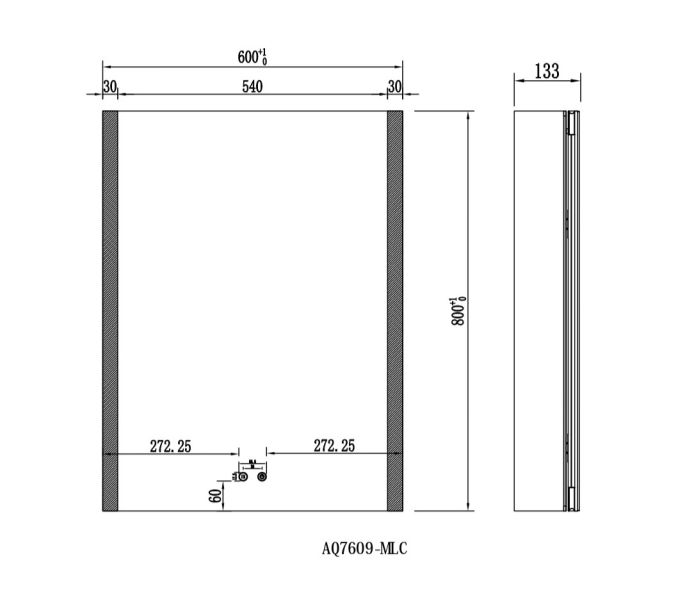 Габариты (Д В Ш), мм: 600*800*133Алюминиевый зеркальный шкаф с подсветкойФорма: прямоугольнаяМонтаж: подвесной, монтируется на поверхность или в нишуОдна зеркальная дверца. Двусторонняя зеркальная дверь и зеркальные боковиныДве стеклянные полки 8 мм.Материал: алюминийЦвет: хромЗеркальный салонКруговая подсветка SMD 2835-120PЦветовая температура 2500K/6500KЛевая/правая боковая акриловая подсветкаФункция антизапотевания2 режима переключения света/ цветаСенсорное управлениеКонструкция дверцы позволяет устанавливать ее так, чтобы она открывалась в нужную вам сторонуПетли DTC, открывание 95 градусов, с механизмом доводчика, обеспечивающим плавное закрываниеМебель поставляется в собранном видеДополнительное оснащение зеркала: подвесыГарантия: 1 год