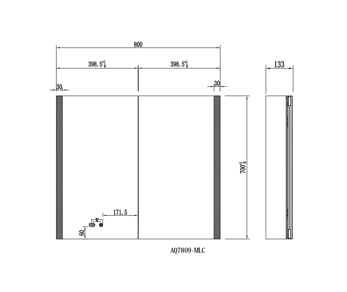 Габариты (Д В Ш), мм: 800*700*133Алюминиевый зеркальный шкаф с подсветкойФорма: прямоугольнаяМонтаж: подвесной, монтируется на поверхность или в нишуДве зеркальные дверцы шириной 39,85см. Двусторонняя зеркальная дверь и зеркальные боковиныДве стеклянные полки 8 мм.Материал: алюминийЦвет: хромЗеркальный салонКруговая подсветка SMD 2835-120PЦветовая температура 2500K/6500KЛевая/правая боковая акриловая подсветкаФункция антизапотевания2 режима переключения света/ цветаСенсорное управлениеПетли DTC, открывание 95 градусовС механизмом доводчика, обеспечивающим плавное закрываниеМебель поставляется в собранном видеДополнительное оснащение зеркала: подвесыГарантия: 1 год