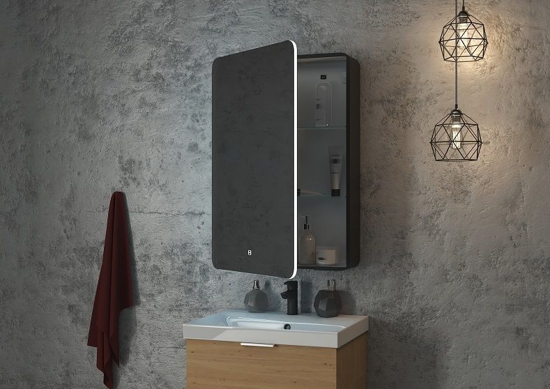 Зеркало-шкаф с подсветкой Art&Max Lecce левый 56см чёрный матовый AM-Lec-560-850-1D-L-DS-F-Nero купить