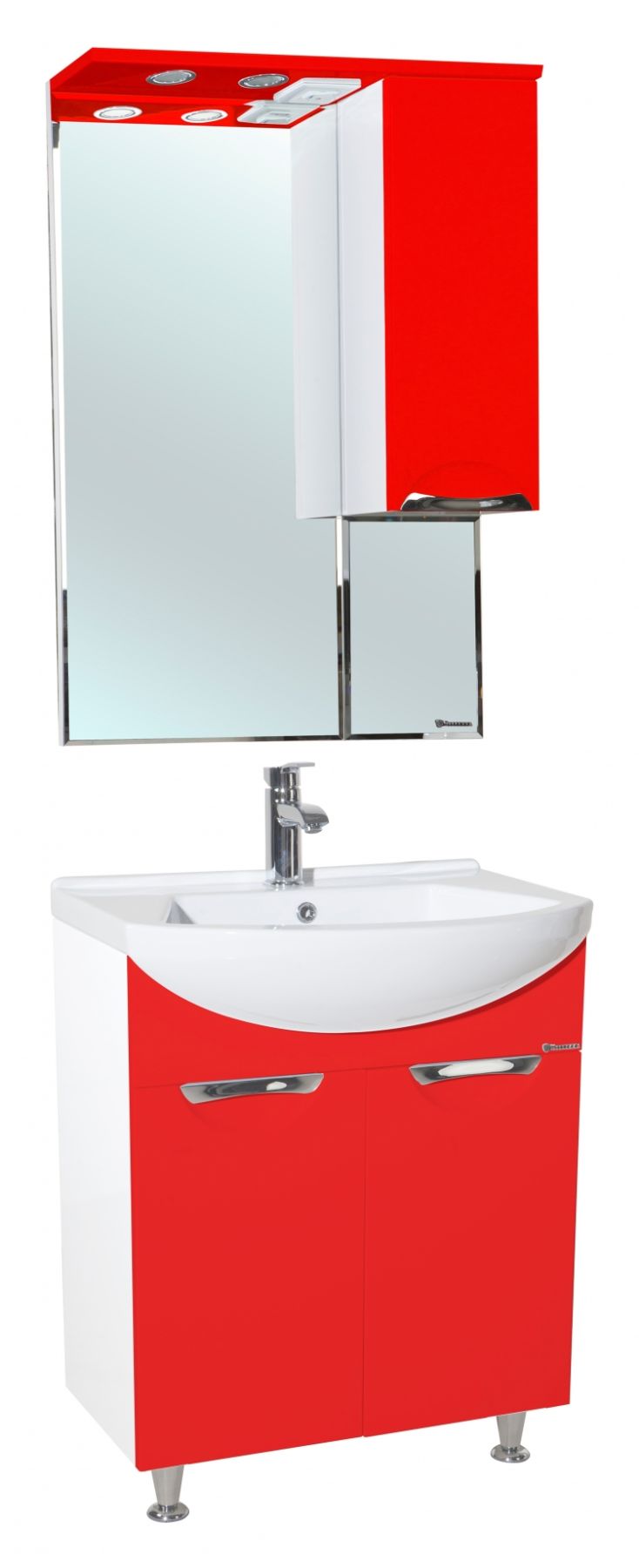 В производстве используют только качественные влагостойкие материалы (ВЛДСП), в составе которых полностью отсутствуют опасные вещества. Данная серия выполнена в эксклюзивном дизайнерском решении в лучших традициях современного стиля. Красный, основной цвет исполнения Bellezza, гармонирующий с большинством интерьерных решений. Шкаф-зеркало предусматривает удобную и вместительную систему хранения. Зеркало Bellezza оснащено галогеновой подсветкой, позволяющей комфортно провести утренние процедуры.