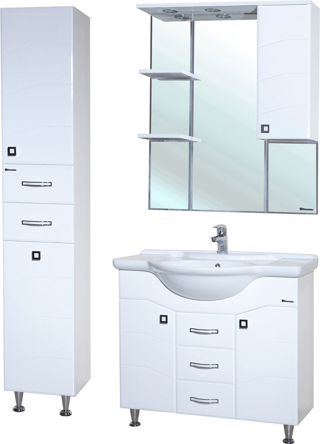 В производстве используют только качественные влагостойкие материалы (ВЛДСП), в составе которых полностью отсутствуют опасные вещества. Данная серия выполнена в эксклюзивном дизайнерском решении в лучших традициях современного стиля. Белый, основной цвет исполнения Bellezza, гармонирующий с большинством интерьерных решений. Шкаф-зеркало предусматривает удобную и вместительную систему хранения. Зеркало Bellezza оснащено галогеновой подсветкой, позволяющей комфортно провести утренние процедуры.