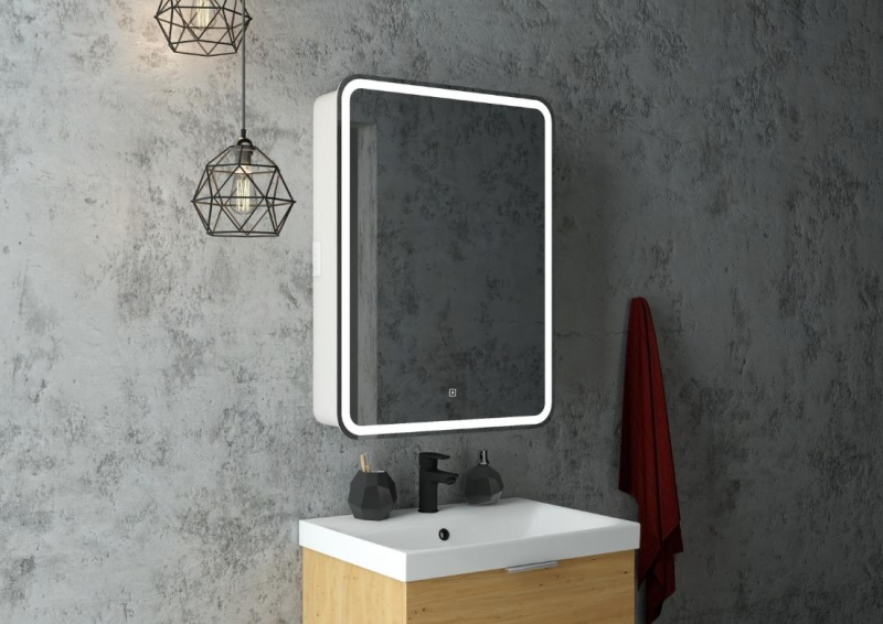 Зеркало-шкаф "Elliott LED" 550х800 правый с розеткойLED подсветка 6000К; сенсорный включатель с функцией димирования, Материал корпуса- МДФ, пленка ПВХ, розетка