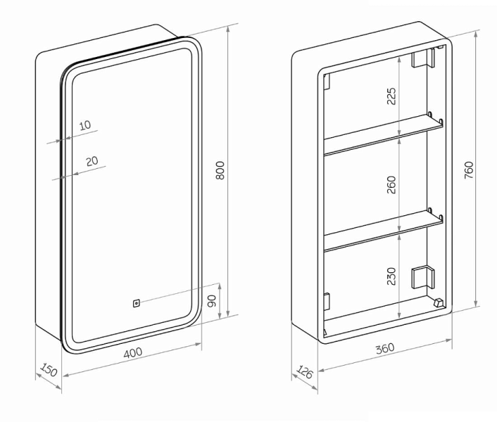 Тип:зеркало-шкаф с подсветкой