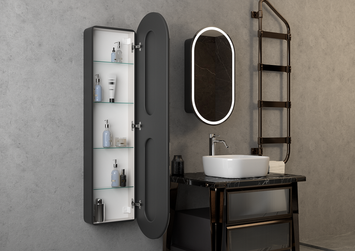 Зеркало-шкаф с подсветкой Continent Elmage Black МВК048 45см чёрный купить