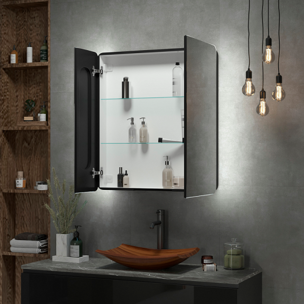 Зеркало-шкаф "Eltoro black LED" 760х850LED подсветка 6000К; датчик движения, материал корпуса - МДФ, цвет корпуса - черный