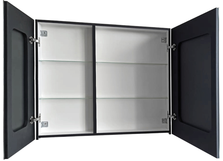 Зеркало-шкаф "Mirror Box black Led" 1000х800LED подсветка 6000К; датчик движения, материал корпуса - МДФ пленка ПВХ с эффектом Soft touch, цвет корпуса - черный, розетка на корпусе, реверсивные крепления