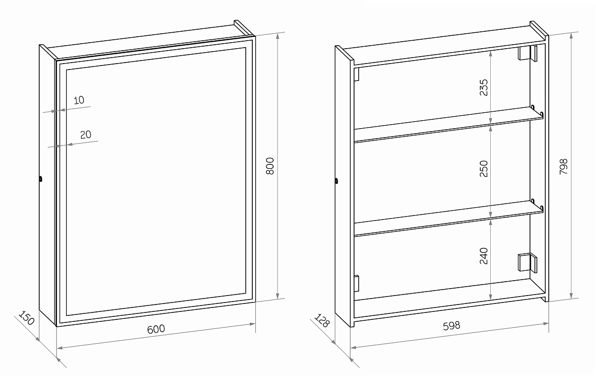 Зеркало-шкаф "Mirror Box black Led" 600х800LED подсветка 6000К; датчик движения, материал корпуса - МДФ пленка ПВХ с эффектом Soft touch, цвет корпуса - черный, реверсивные крепления